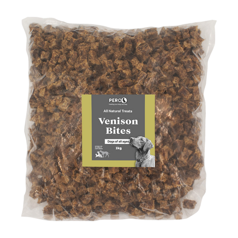 These yummy Venison Bites are a 100% natural dog treat so your four-legged friend can reap all the healthy rewards as they chomp!