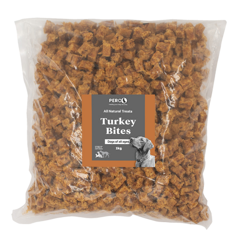 Tasty, healthy, and suitable for sensitive dogs with food allergies, be assured your dog will love our turkey bites. These treats are high in protein and suitable for dogs of all ages (Puppy to Senior). They're also a great choice for dogs who have intolerances.